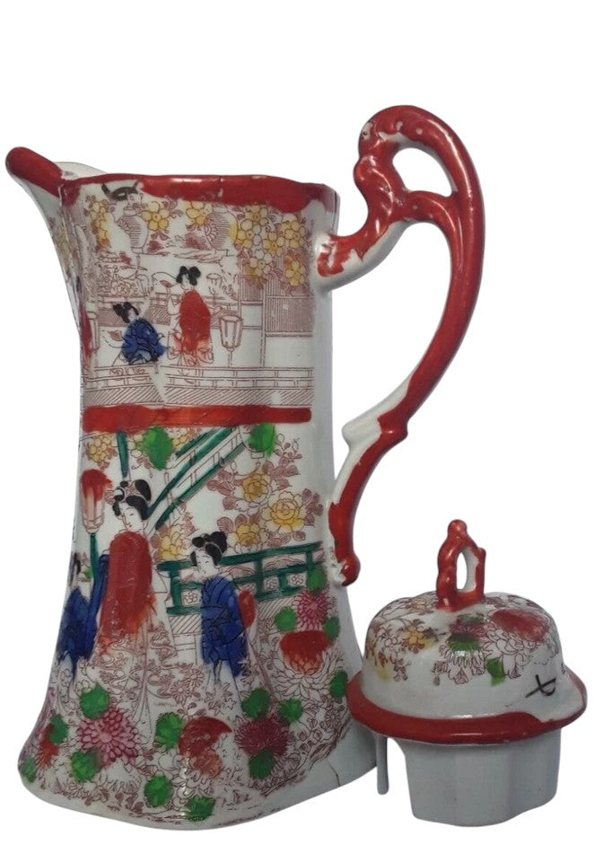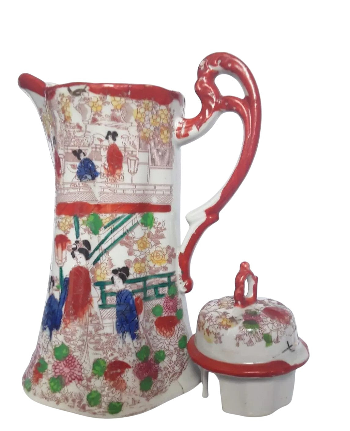 Antique Japanese Kutani Porcelain Chocolate Pot, Hand-Painted, Circa 1900